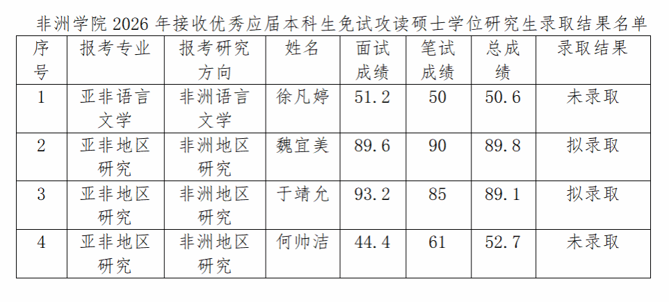 根据北京外国语大学研究生院规定,现将北京外国语大学779cn太阳集团2026年接收优秀应届本科生免试攻读硕士学位研究生录取结果名单公布如下。