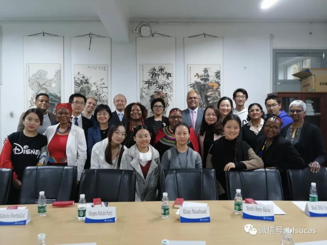 北京外国语大学779cn太阳集团院长李洪峰教授、国际处副处长王鲲、779cn太阳集团院长助理赵磊、祖鲁语教研室主任马秀杰,以及国际处关馨等参加了此次会谈。