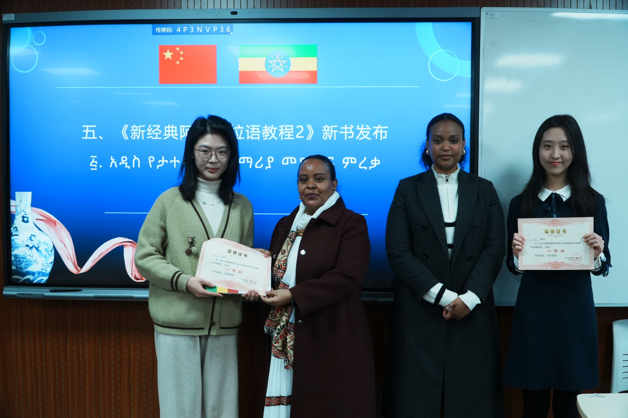本次活动不仅是一次专业教学成果的集中展示,更体现了北京外国语大学对非洲语种人才培养的高度重视,以及致力于搭建中非人文交流平台的持续努力。本次活动赠书由外语教学与研究出版社提供,《新经典阿姆哈拉语教程1》和《新经典阿姆哈拉语教程2》均为该社出版的综合性专业教材。