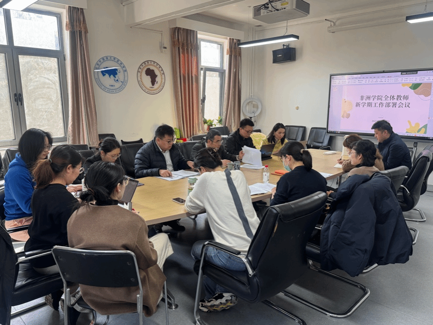 随后,李洪峰院长就新学期工作进行部署。新学期学院将结合各专业培养方案修订,结合国家人才需求,持续夯实教学工作,提升教学质量。科研方面,提升非洲研究中心平台作用,鼓励教师团队积极申报高级别科研项目,并持续推进中非联合研究工作。国际交流方面,学院将深耕非洲高校学术人才资源,积极开展学术交流活动。师资队伍建设方面,学院将充分发挥“传帮带”和新老互助机制,促进师资队伍的合作与成长。