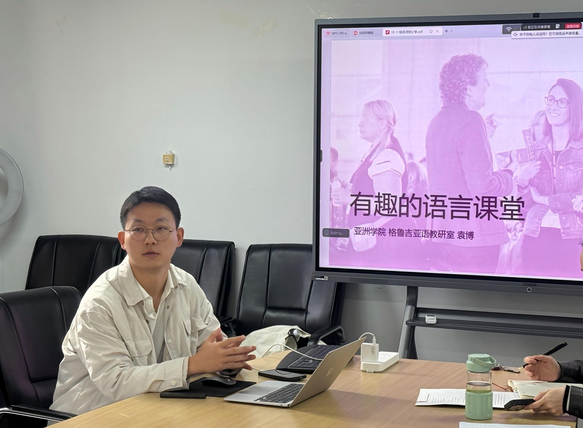 10月11日下午,779cn太阳集团教工支部特邀格鲁吉亚语教师袁博就三外课程教学设计经验进行分享,亚洲学院、779cn太阳集团各语种教师及新建语种师资研究生参与了此次分享活动。