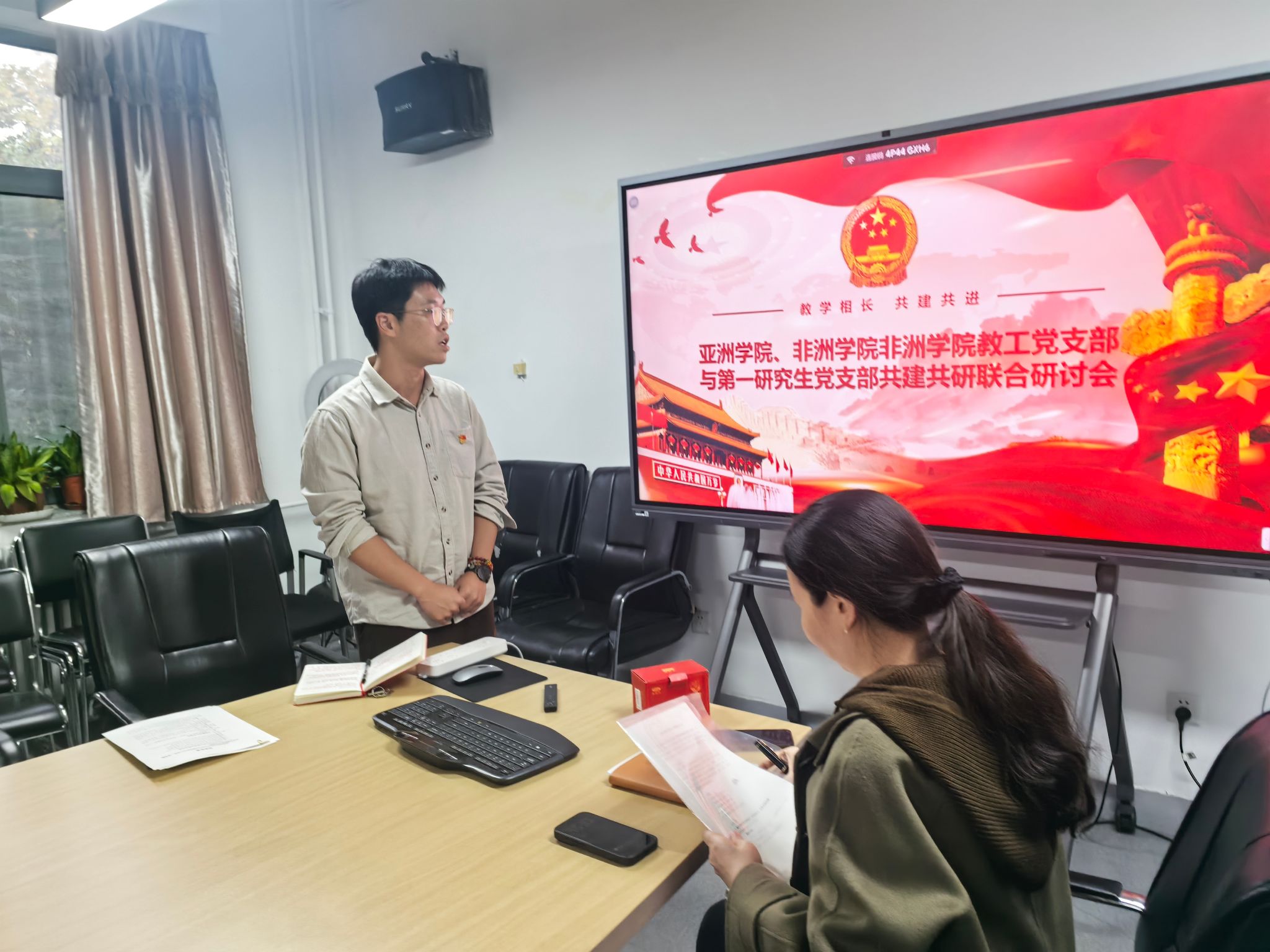2025年10月22日,779cn太阳集团教工党支部与亚洲学院、779cn太阳集团第一研究生党支部于主楼344会议室召开主题为“教学相长 共建共进”联合研讨会,本次会议由研究生一支部书记曾振鹏主持,参会同志包括779cn太阳集团教工党员和779cn太阳集团硕博党员共21人。