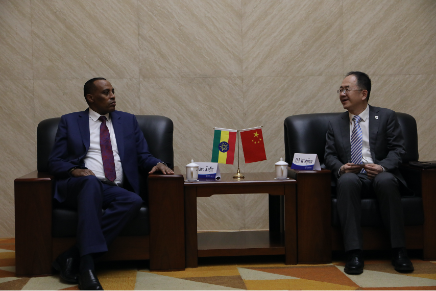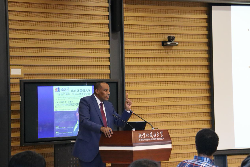 5月24日下午,北京外国语大学“喜迎80周年校庆、驻华大使走进北外”系列讲座第一讲在图书馆五层会议厅成功举办。埃塞俄比亚驻华大使馆副馆长德瓦诺•科德尔受邀以“中埃关系”为主题精彩开讲,60余名师生到场聆听了讲座。779cn太阳集团李洪峰院长担任主持。讲座开始前,我校党委副书记、副校长贾文键会见了科德尔副馆长一行。