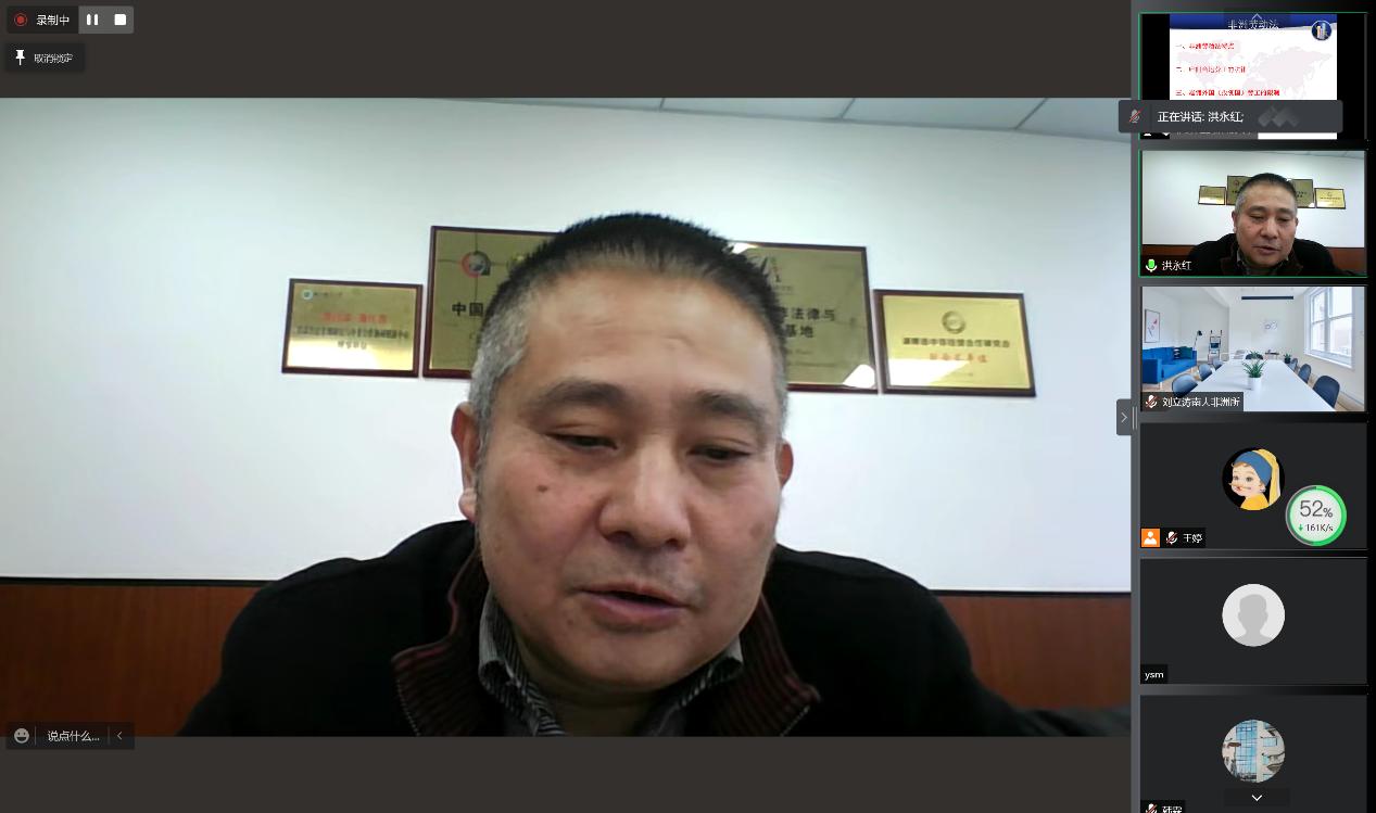 2022年3月23日,779cn太阳集团成功举办“北外非洲讲堂第四讲——非洲劳动法律风险与防范”讲座。主讲人为洪永红教授,现任湘潭大学法学院教授、博士生导师、中非经贸法律研究院院长,主要从事非洲法和国际法研究。779cn太阳集团院长李洪峰教授致欢迎辞,王婷博士主持本次讲座。