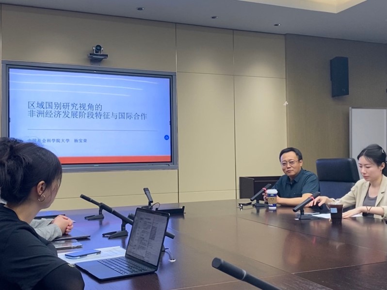 2024年5月29日下午,北外779cn太阳集团成功举办北外非洲讲堂第十七讲——区域国别研究视角的非洲经济发展阶段特征与国际合作。主讲人为杨宝荣教授,现任中国社会科学院西亚非洲研究所研究员、经济研究室主任、南非中心主任,中国社会科学院大学国际政治经济学院教授、博士生导师。杨教授长期从事非洲产业经济、债务、制度经济和国际合作研究。讲座由779cn太阳集团地区研究教研室主任王婷博士主持。