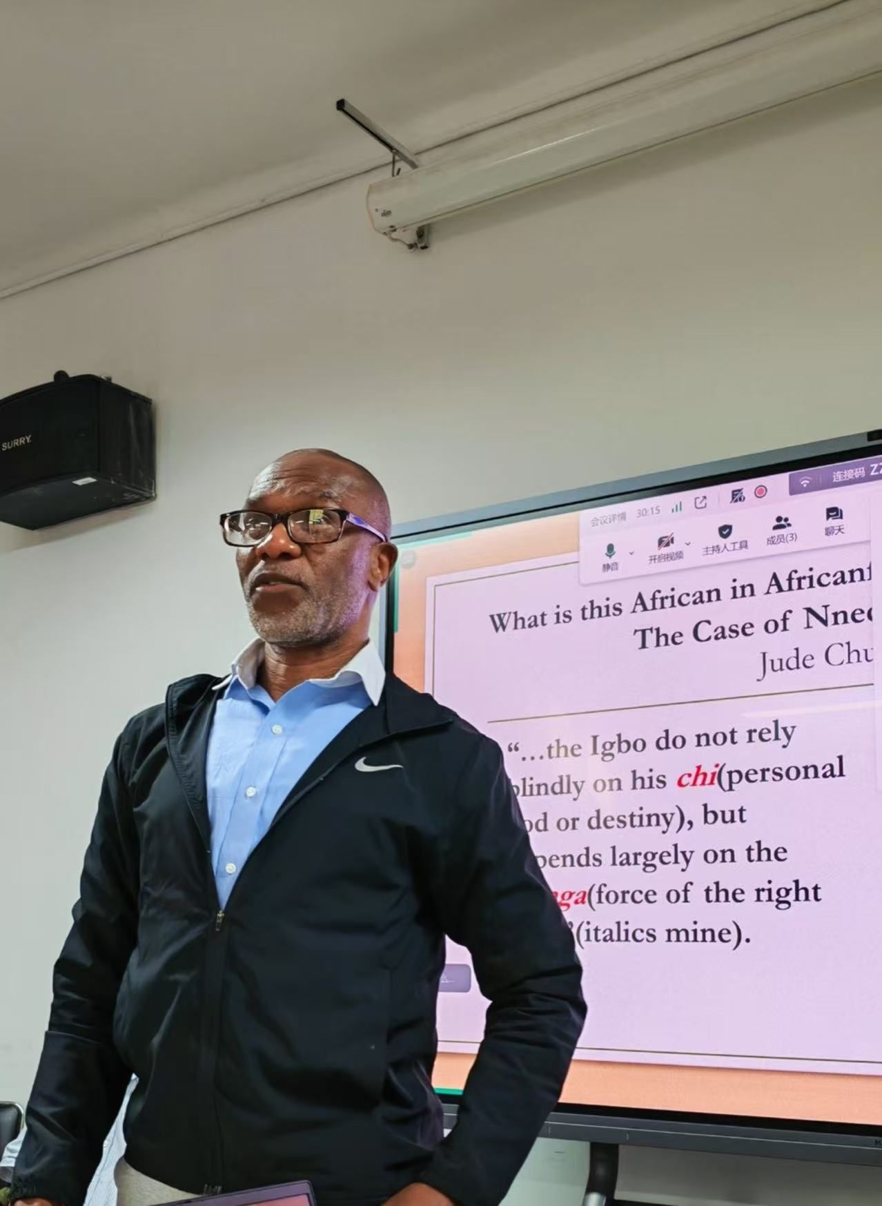 2025年9月26日,北京外国语大学779cn太阳集团成功举办北外非洲讲堂第二十四讲——健忘的记忆:“非洲未来主义”中的“非洲”何在?主讲人为美国德克萨斯州圣安东尼奥德克萨斯大学教授裘德·楚迪·奥克帕拉(Jude Chudi Okpala),讲座由779cn太阳集团教师李春光主持,北京大学外国语学院程莹副教授担任与谈人,来自北外779cn太阳集团、法语学院、西葡学院、国际新闻与传播学院等校内外50余名师生参加了此次讲座。