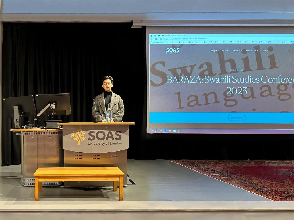 11月18日,由伦敦大学亚非学院(SOAS)主办的“2023年斯瓦希里研究年会”在英国伦敦举行。我院2021级非洲语言文学专业硕士研究生丁瑞林受邀参会并作了题为“殖民语境下的英国文学斯瓦希里语译介与文学现代性的悖论”的发言。他从不平等的权力关系的视角出发,探讨了在殖民主义影响下文学翻译引入的现代性中的悖论和局限性,以及这种现代性对现代斯瓦希里语文学的影响。