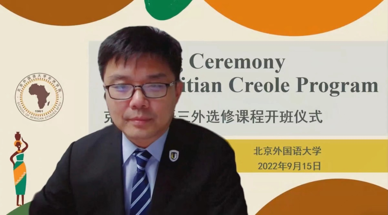 首先,赵刚副校长致欢迎辞,对毛里求斯政府、毛里求斯驻华大使馆、中国驻毛里求斯大使馆以及为毛里求斯克里奥尔语专业建设贡献力量的学者们表示感谢。他指出,北外是全国第一所也是唯一一所开设毛里求斯克里奥尔语的高校。而今年恰逢中毛两国建交50周年,克里奥尔语课程的开设将有助于进一步推动中毛友谊的发展。同时,赵刚副校长也鼓励同学们努力学习,珍惜学习克里奥尔语的机会,未来通过所掌握的语言知识促进中毛、中非友谊的发展。