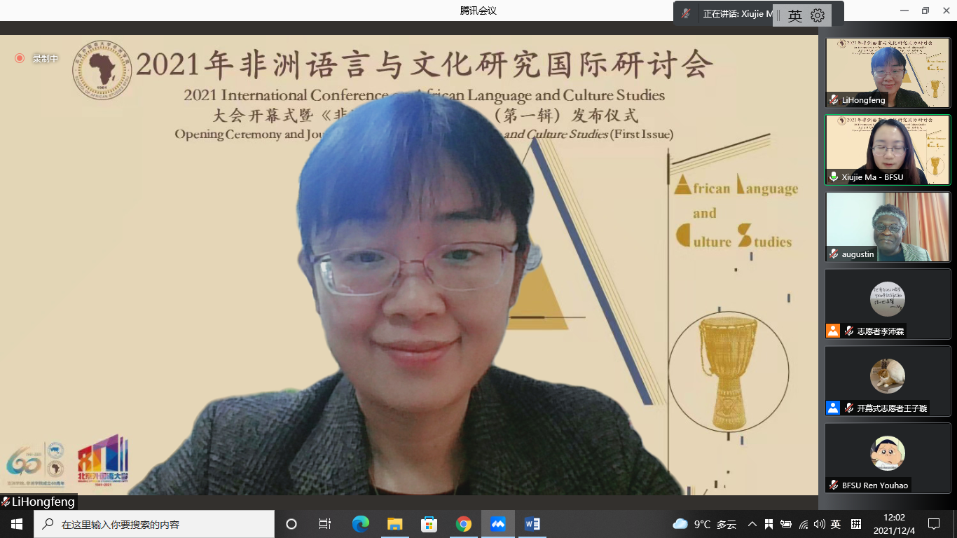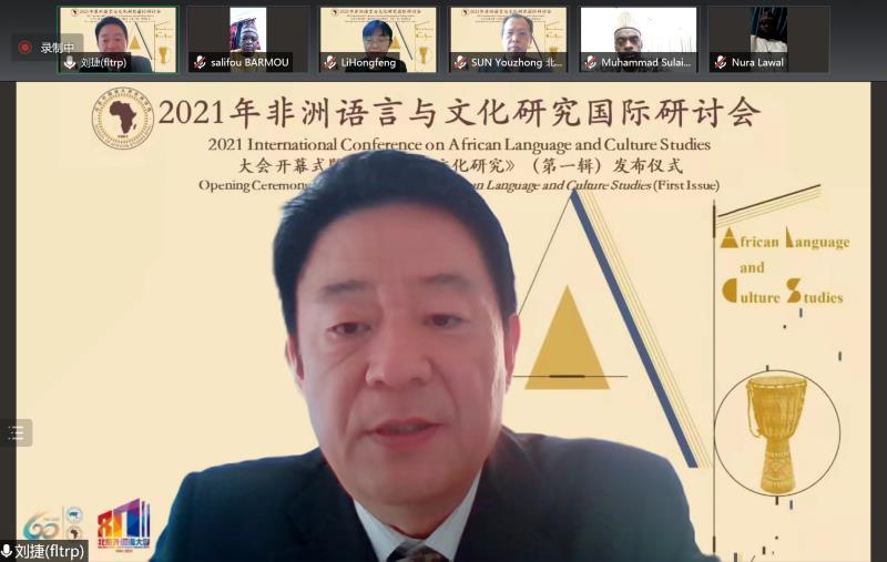 12月4日,北外779cn太阳集团成功举办“2021年非洲语言与文化研究”国际研讨会。北外党委常委、副校长孙有中、外语教学与研究出版社副社长刘捷、779cn太阳集团院长李洪峰等出席会议开幕式并致辞。来自北外、国际关系学院、上海外国语大学、北京师范大学、清华大学、中央民族大学、坦桑尼亚达累斯萨拉姆大学、肯尼亚肯雅塔大学、尼日利亚伊巴丹大学、巴耶罗大学、尼日尔阿卜杜·穆穆尼大学、埃塞俄比亚亚的斯亚贝巴大学、马达加斯加塔那那利佛大学、高等师范学院、法国国立东方语言文化学院、俄罗斯圣彼得堡国立大学、德国汉堡大学等39所高校的数十名学者和师生参加了会议并发言。