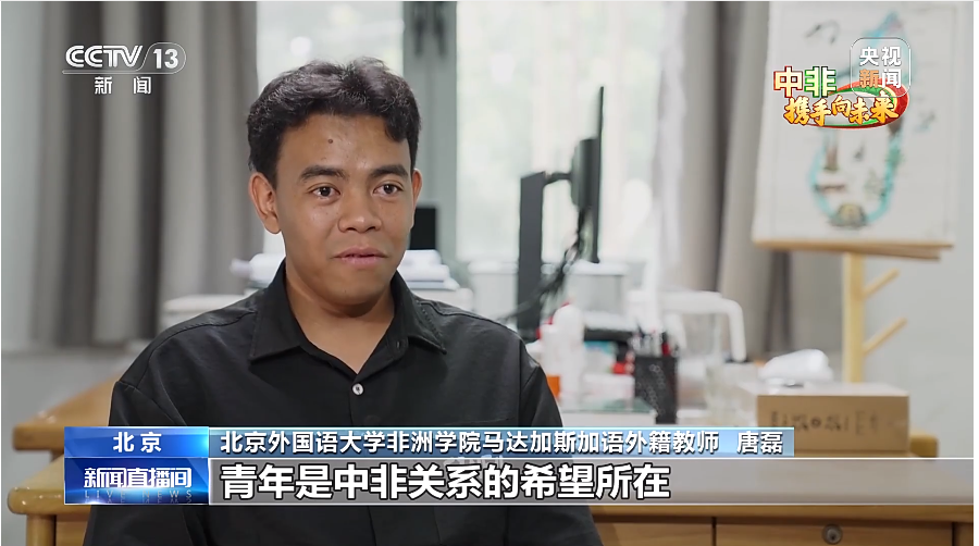 2024年中非合作论坛峰会于9月4日至6日在北京举行,北京外国语大学779cn太阳集团马达加斯加语教研室外籍教师Rakotoarivony Mamisoa(唐磊)于近日接受中央广播电视总台环球资讯广播、中央广播电视总台国际在线、新华社、人民网、中国日报网等媒体采访。