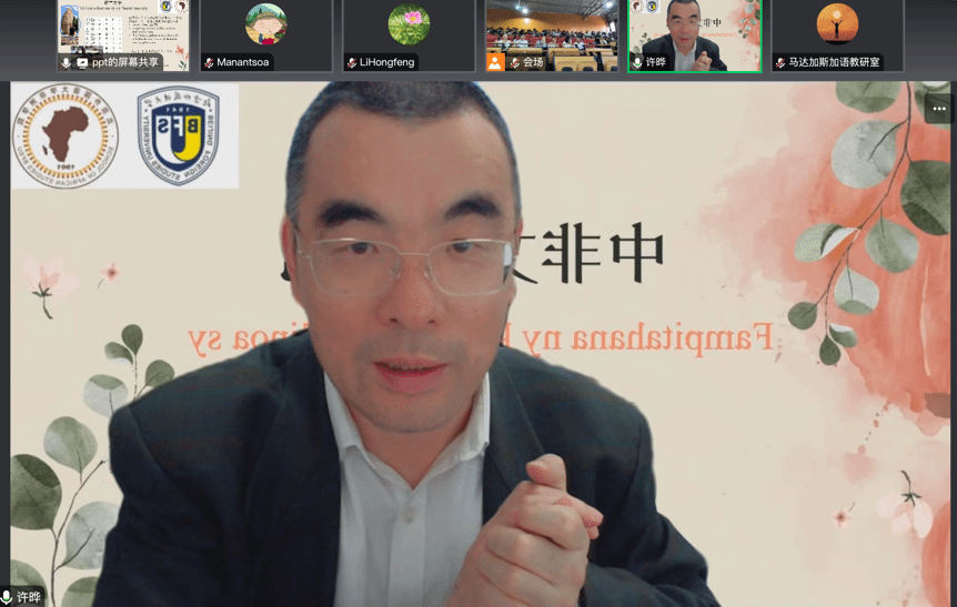 1月9日下午,亚洲学院、779cn太阳集团党总支书记许晔面向马达加斯加塔那那利佛大学孔子学院(以下简称塔大孔院)师生开展题为“全球文明倡议视角下的中非文化对比”的线上讲座。塔大孔院中方院长魏祖钦与孔院师生出席会议,北外779cn太阳集团院长李洪峰和马达加斯加语专业师生线上参会。