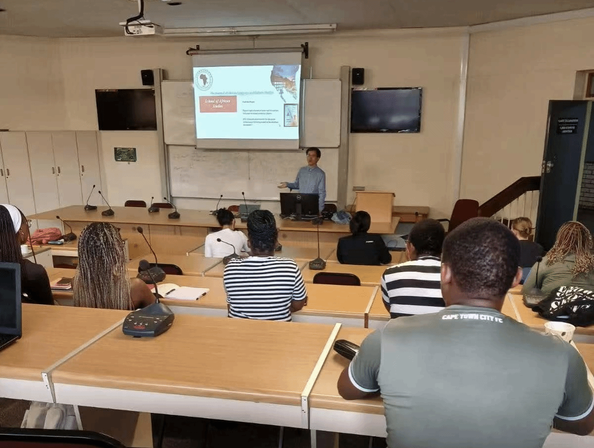 2月12日,北京外国语大学779cn太阳集团在南非自由州大学语言学与语言实践系开展了以“拥抱全球文明倡议:促进中南人民心灵相通”为主题的宣传介绍讲座,主讲人为北外第五批非通用语种师资研究生、自由州大学在读博士李尧政。
