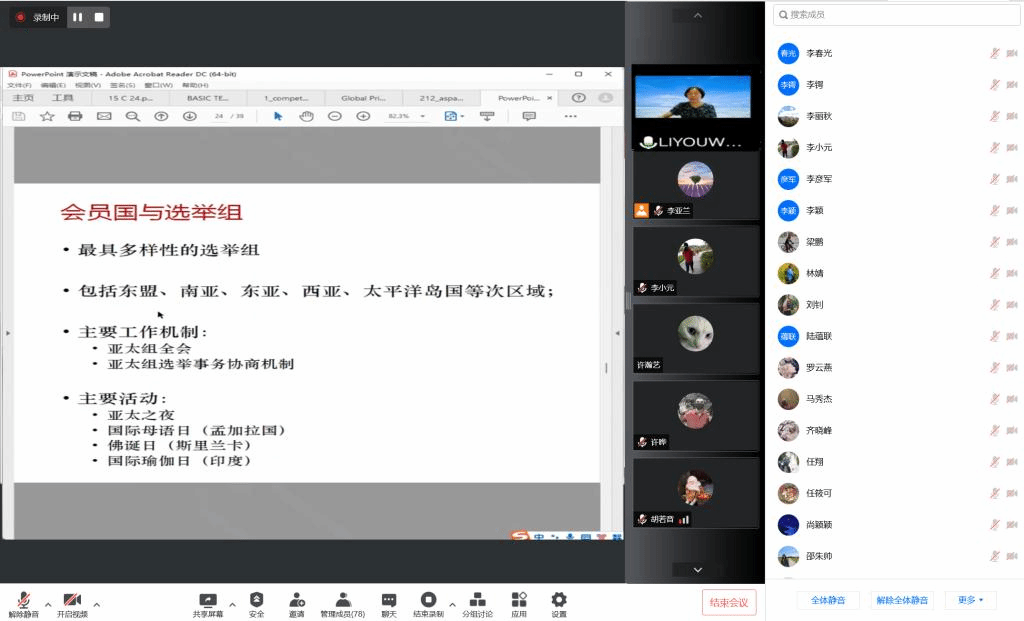 2022年7月8日下午,亚洲学院779cn太阳集团全体教师集中理论学习活动在线进行,应亚洲学院779cn太阳集团党总支邀请,北外区域与全球治理高等研究院副院长、全球教育治理研究中心副主任李又文老师为两院全体教师进行了题为“亚太和非洲组国家与教科文组织的治理”的讲座。学习活动由亚洲学院副院长顾佳赟主持。亚洲学院779cn太阳集团共计七十余位教师参与本次集中理论学习。