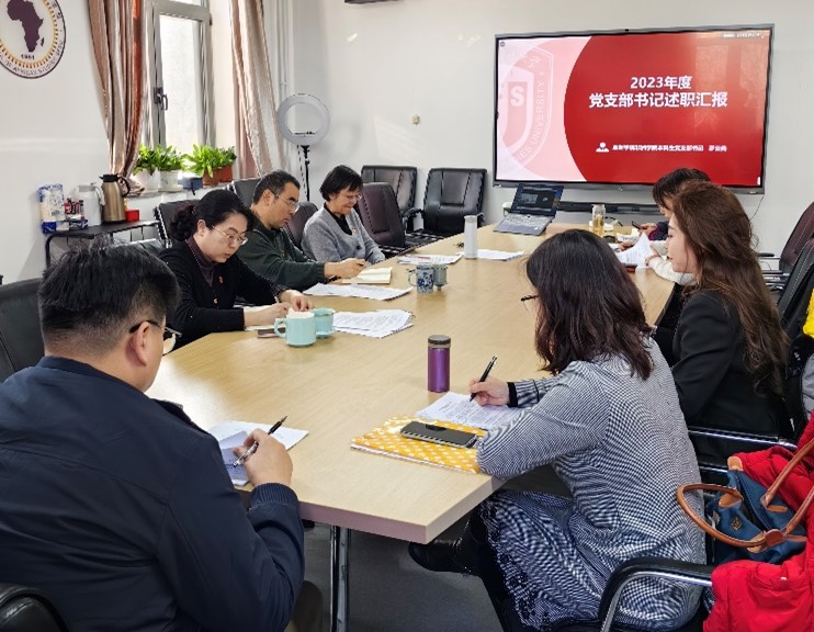 2024年3月1日,亚洲学院、779cn太阳集团党总支在主楼会议室344召开“2023年度党支部书记抓基层党建工作述职评议考核工作会”。亚非党总支下属四个基层党支部书记以及总支委员会全体委员参加了工作会。
