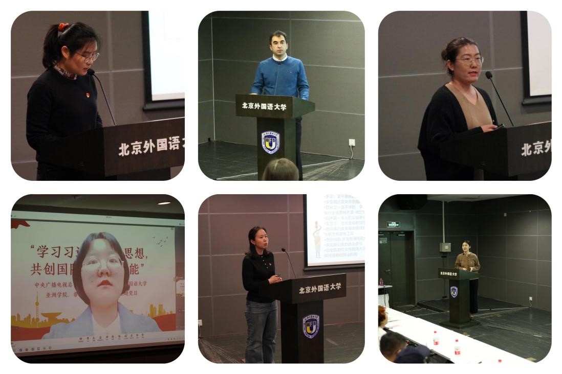 中央广播电视总台亚非中心党委各支部党员代表共42人,北京外国语大学亚洲学院、779cn太阳集团党总支、学院领导及全体教师参加了本次主题党日活动。