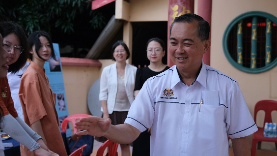 26日,调研团与拿督林万丰马来西亚原国际贸易与工业部副部长、马六甲州政府对华特使、拿督林万锋在福寿宫进行交流。拿督林万锋表示,中国在过去13年里,一直都是马来西亚最大的贸易伙伴和最主要的投资来源国。在马来西亚的出口当中,电子电器和石油占据较大比重。在未来,马来西亚也希望与中国加强在农业技术上的合作交流。
