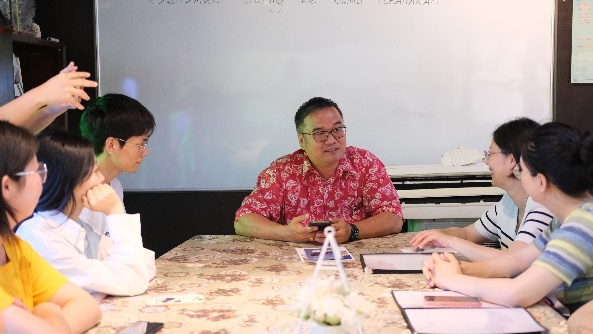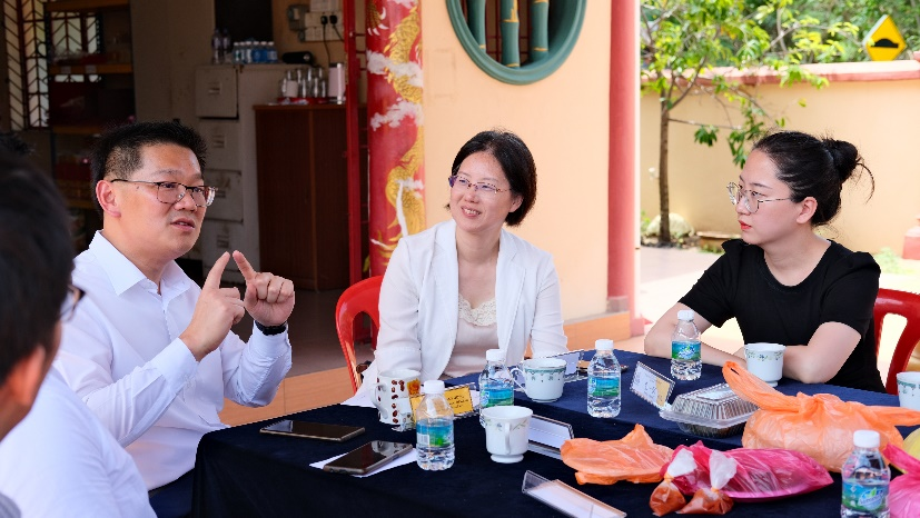 同日,实践团也在马六甲阿莱海明园与华侨大学马来西亚研究中心副教授钟大荣,就中马关系与华人文化传承等问题进行了座谈交流。钟副教授表示,马来西亚以多元文化为特色,提倡多民族共同发展,这里的华人教育、媒体、经济和文化都得以较好发展。当前构建人类命运共同体,可以从两国共通之处出发,实现各美其美,美美与共。